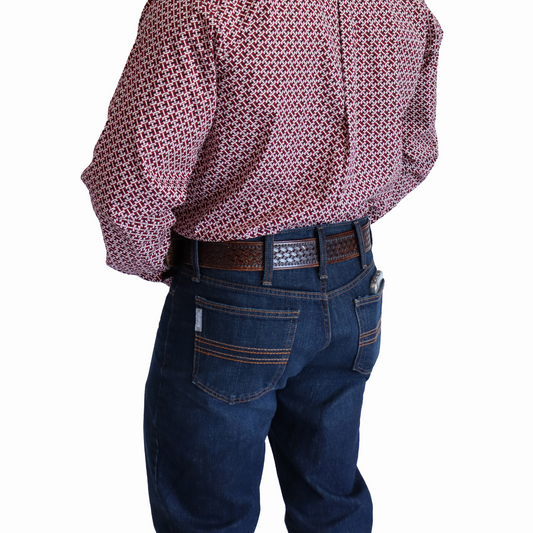 Camisa Cinch Manga Larga Classic Fit Roja Figuras MTW1105769
